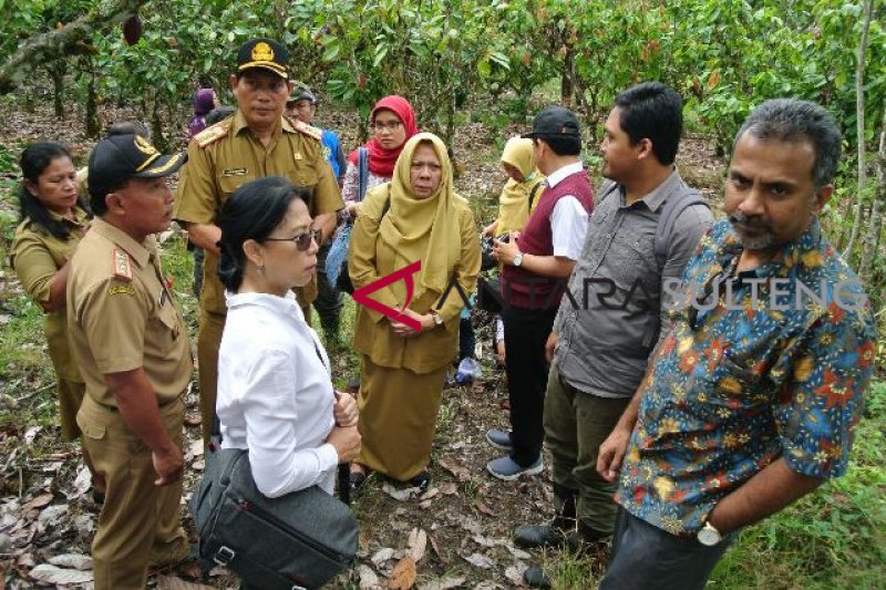 Perwakilan WHO/organisasi kesehatan dunia dari India (kanan) dan Direktur P2PTVZ menggunakan kameja putih bersama Kadis Kesehatan Provinsi Sulteng dr Reny Lamadjido dan Kadiskes Poso dr Taufan saat mengunjungi lokasi fokus cacing Schistosomiasis atau penyakit keong di dataran Napu, Selasa (3/4).