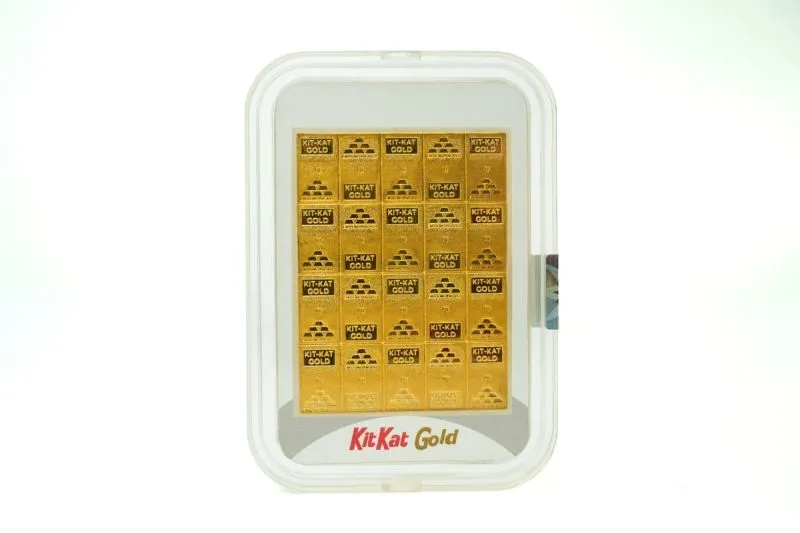 KitKat Gold bukan sekadar logam mulia biasa. Produk ini dirancang khusus dengan garis potong presisi yang memungkinkan setiap keping emas dibagi dalam kelipatan 1 gram tanpa meninggalkan serpihan.